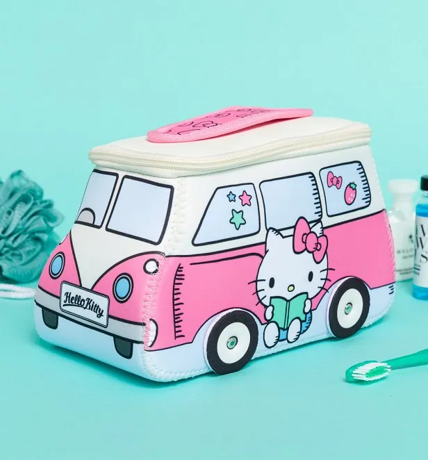 Heading out on a road trip or holiday and need to keep your beauty and grooming essentials handy and in one place? It's time to load up this cool campervan inspired Hello Kitty toiletry bag! Fans of the super-kawaii Sanrio cartoon cat will be in love with the design on this shaped bag. Simply unzip the roof on top of the bag, store away your makeup or lotions and potions, then carry them away by the hair bow shaped handle!